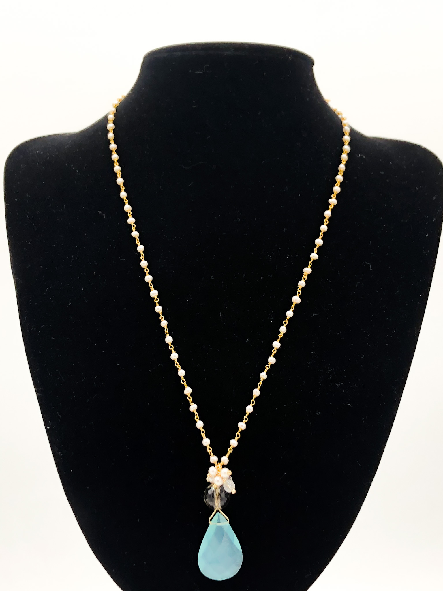 Ciondolo in calcedonio e quarzo fume’