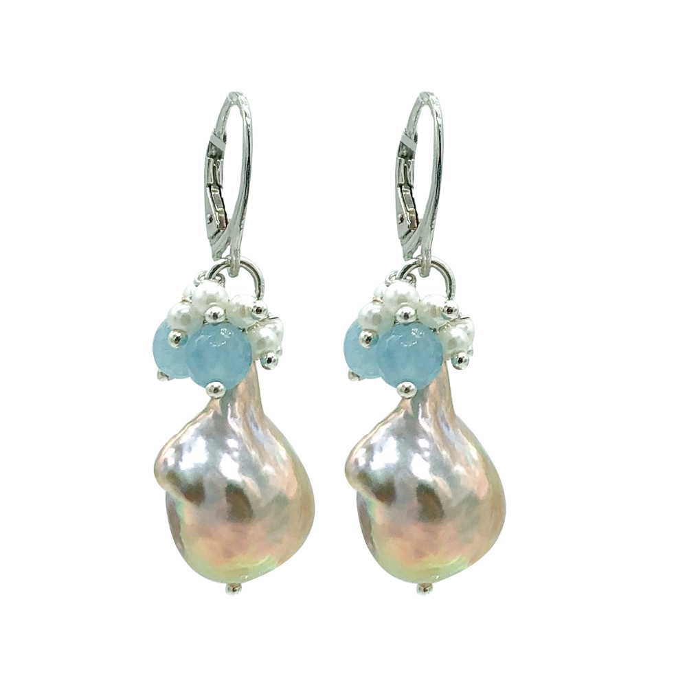 Orecchini in acquamarina e perle scaramazze montate in argento anallergico