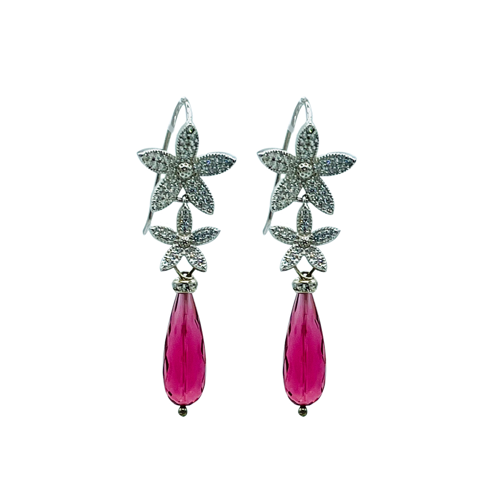 Orecchini con idrotermale e zirconi bianchi montati in argento anallergico