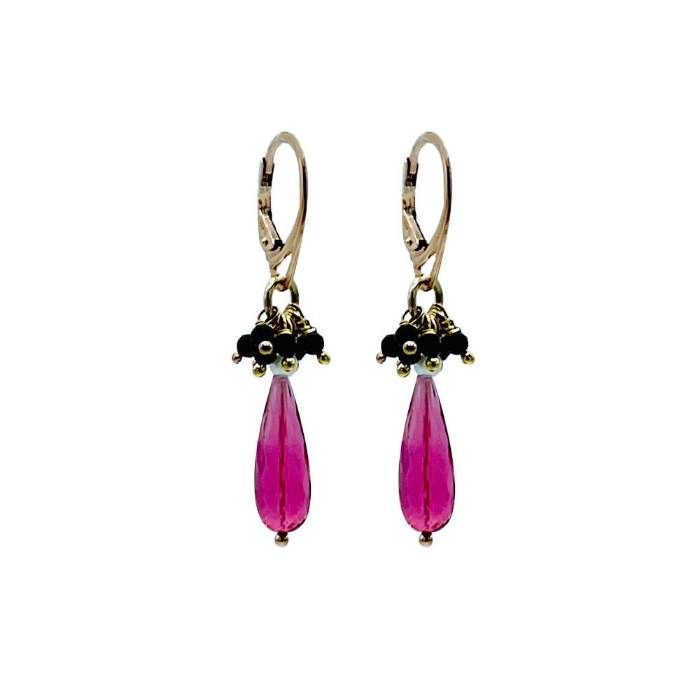 Orecchini montati in argento rosato con idrotermale, spinello nero e perle