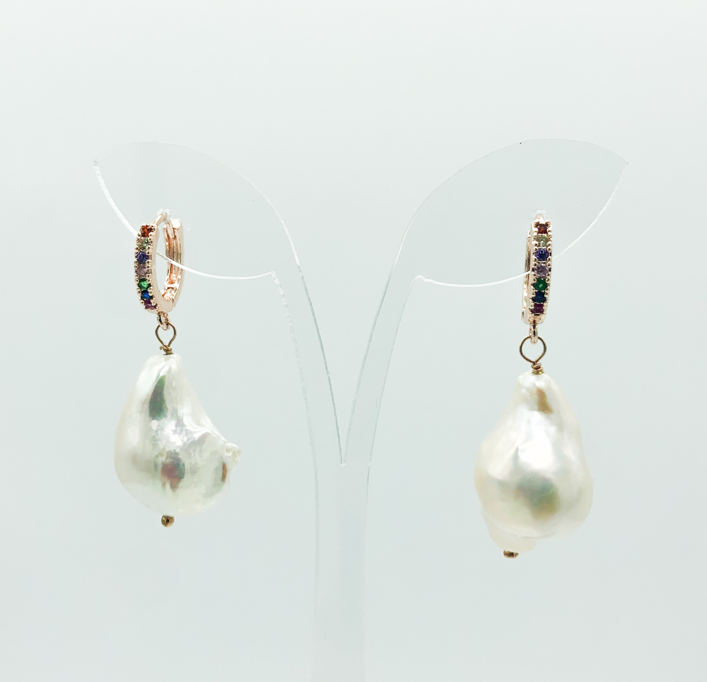 Orecchini in perle di fiume montati in argento rosato anallergico con zirconi incastonati