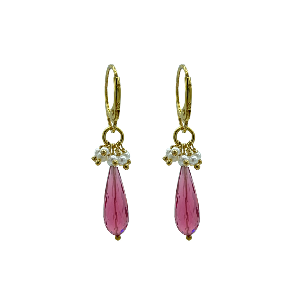 Orecchini con perle e idrotermale montati in argento dorato anallergico