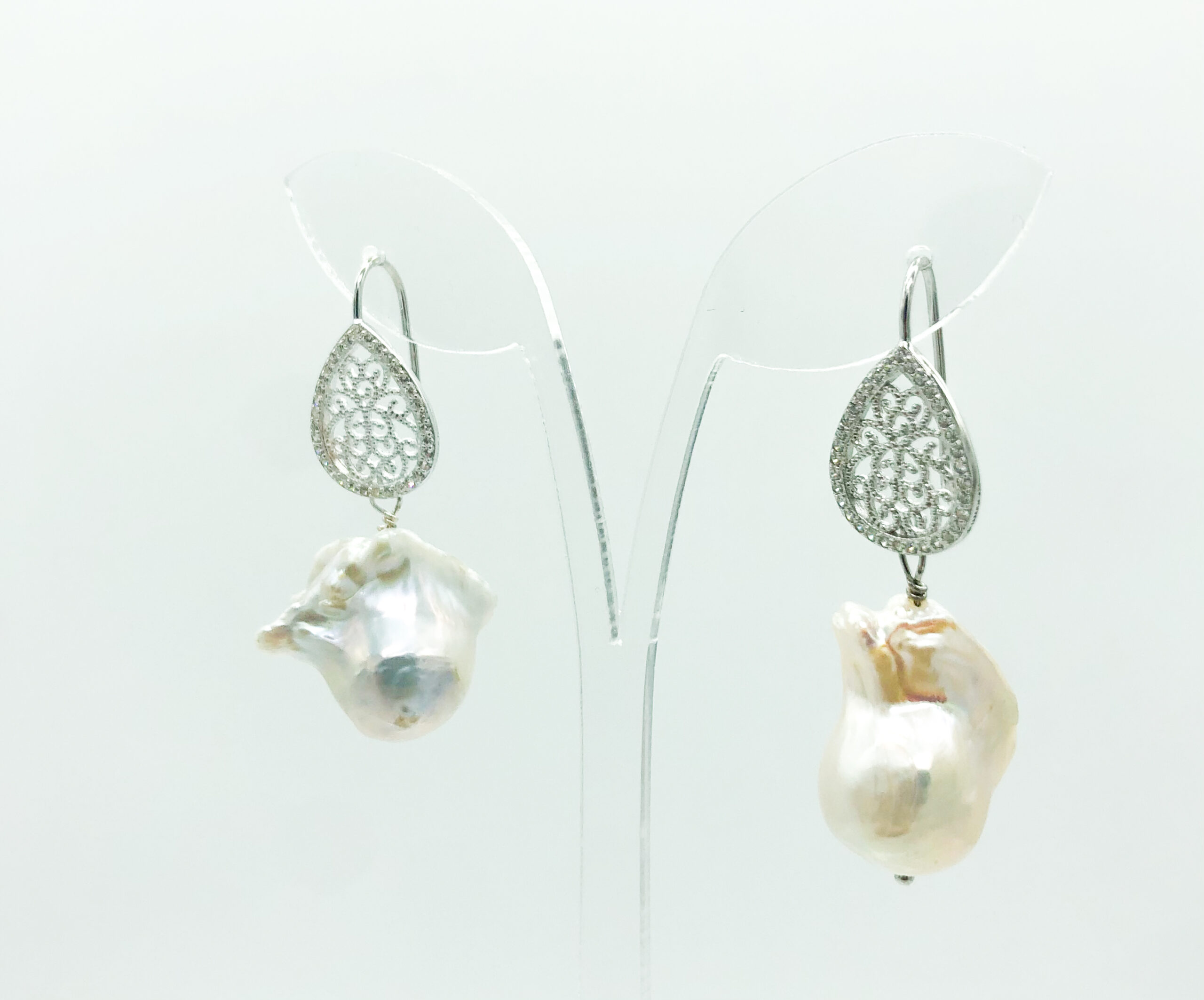 Orecchini in perle montati in argento anallergico con zirconi